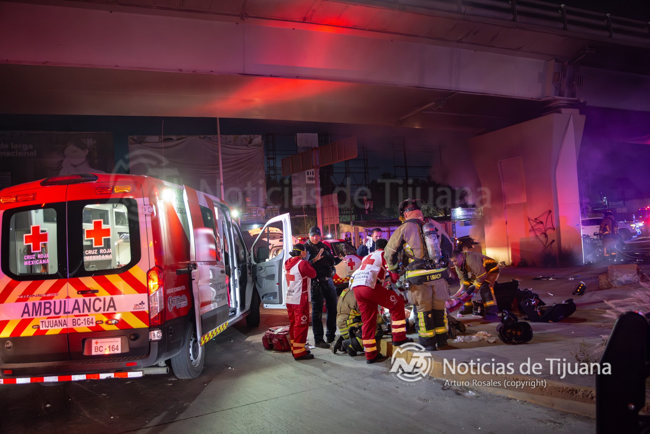 Una pareja resultó con heridas de gravedad tras un accidente de tránsito registrado en el puente de la carretera Aeropuerto, a la altura de la intersección con el bulevar Bellas Artes, en la delegación Mesa de Otay.