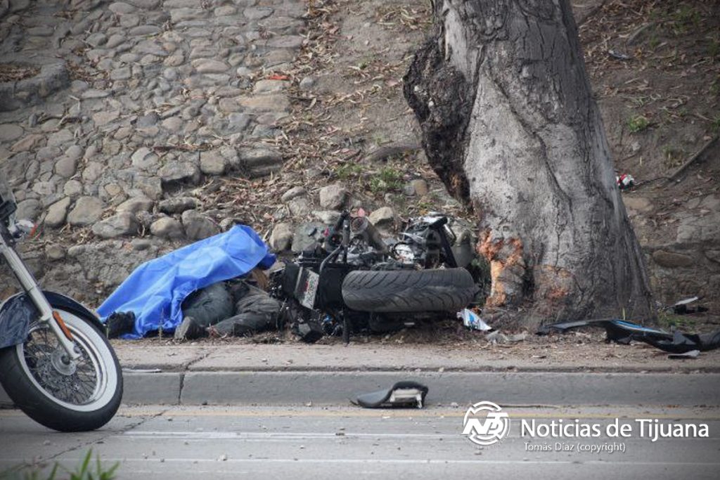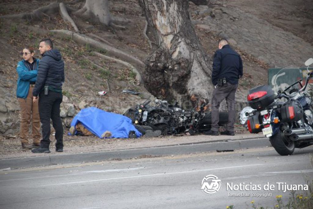 Paramédicos de la Cruz Roja arribaron al sitio, pero el hombre fue declarado sin vida. La motocicleta, con placas de California, quedó parcialmente destruida tras el impacto.