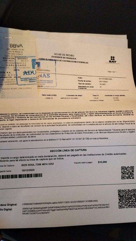 Rivera señala que el agente le advirtió repetidamente que, si no pagaba el monto, sería remitida al Ministerio Público. Agrega que viajaba con dos menores de edad y otra persona adulta, pues ella es originaria de Sonora y se encontraba de visita en Tijuana. Debido al elevado monto, permaneció varias horas intentando reunir el dinero: