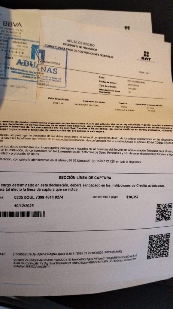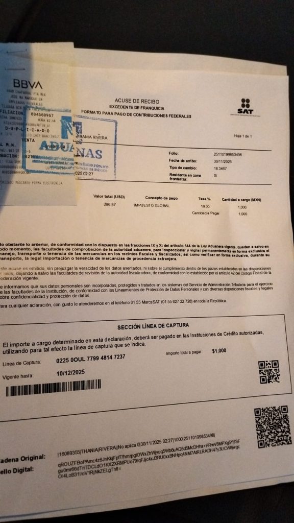 TIJUANA.– Una ciudadana identificada como Lissett Rivera denunció el actuar de un agente de la Guardia Nacional (GN) adscrito a la Garita de Otay, a quien acusa de intimidarla, amenazarla y retenerle su visa para obligarla, afirma, a pagar una multa superior a 31 mil pesos por exceder el límite permitido al regresar de San Ysidro en compras por 1664 dólares en total.