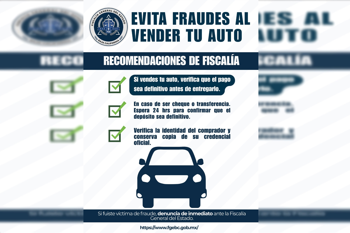 La Fiscalía General del Estado (FGE) alertó a la ciudadanía sobre riesgos en operaciones de compraventa de automóviles, ya que personas han utilizado transferencias bancarias con estatus ‘salvo buen cobro’ para cometer fraudes.