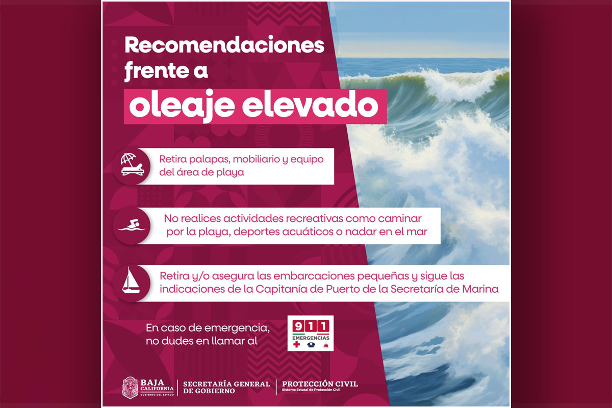 La Coordinación Estatal de Protección Civil (CEPC) emitió una advertencia a la población ante la presencia de alto oleaje en la franja costera del estado, fenómeno que se prevé continúe durante la noche de este viernes y disminuya gradualmente el sábado, de acuerdo con los pronósticos del Servicio Meteorológico Nacional (SMN) de la Conagua.