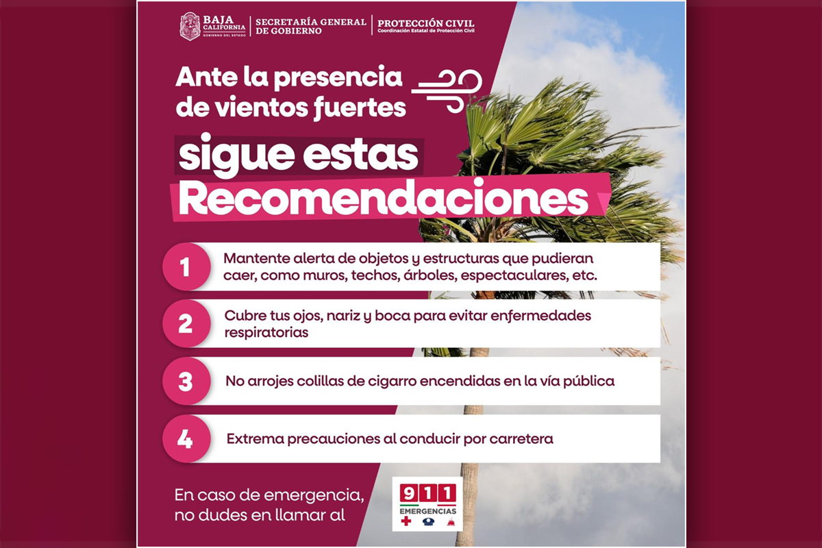 Ante esta condición meteorológica, la CEPC exhorta a usar cubrebocas, asegurar objetos en exteriores, alejarse de tendidos eléctricos, reducir la velocidad al manejar, evitar encender o manipular fuego, así como mantenerse al pendiente de su entorno.