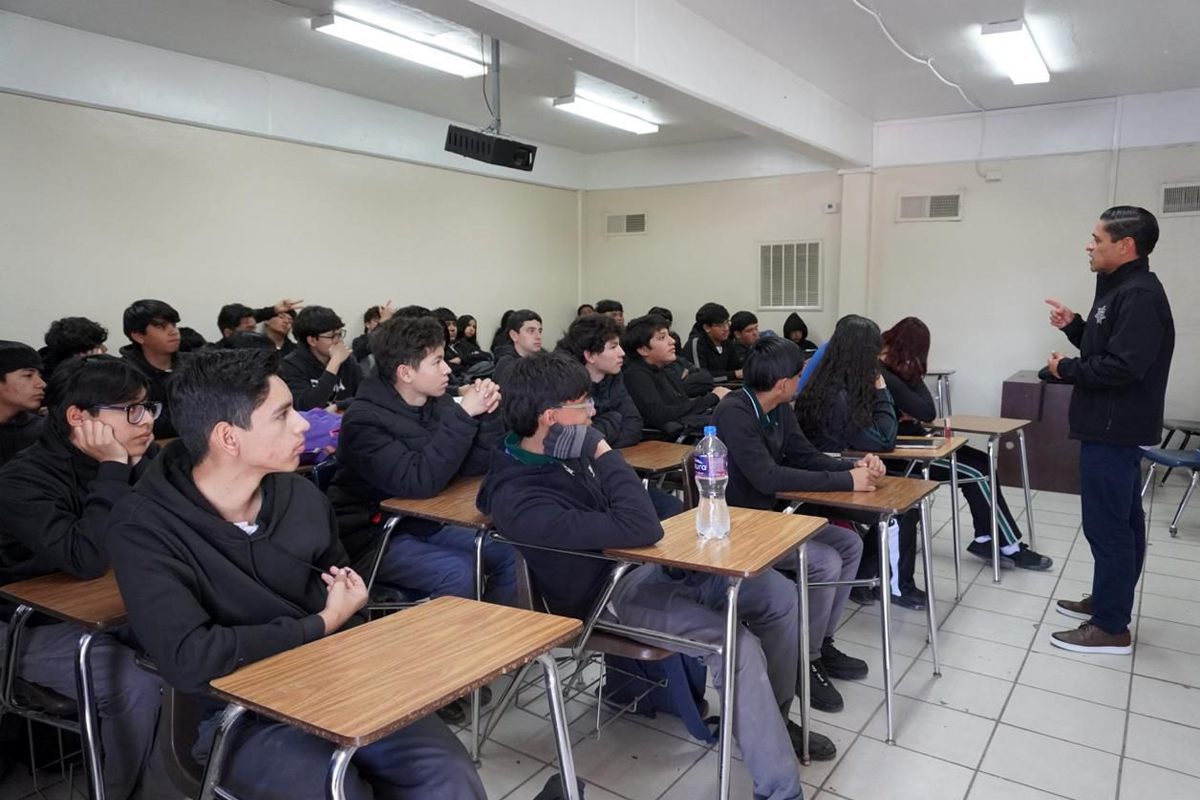 Más de 958 estudiantes del Conalep Mexicali I, en el ejido Puebla, participaron en una jornada preventiva contra la extorsión, como parte de la campaña permanente que impulsa la Secretaría de Seguridad Ciudadana de Baja California.
