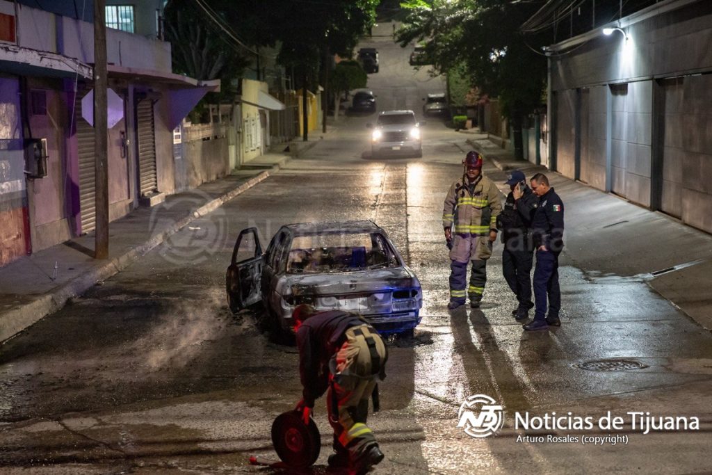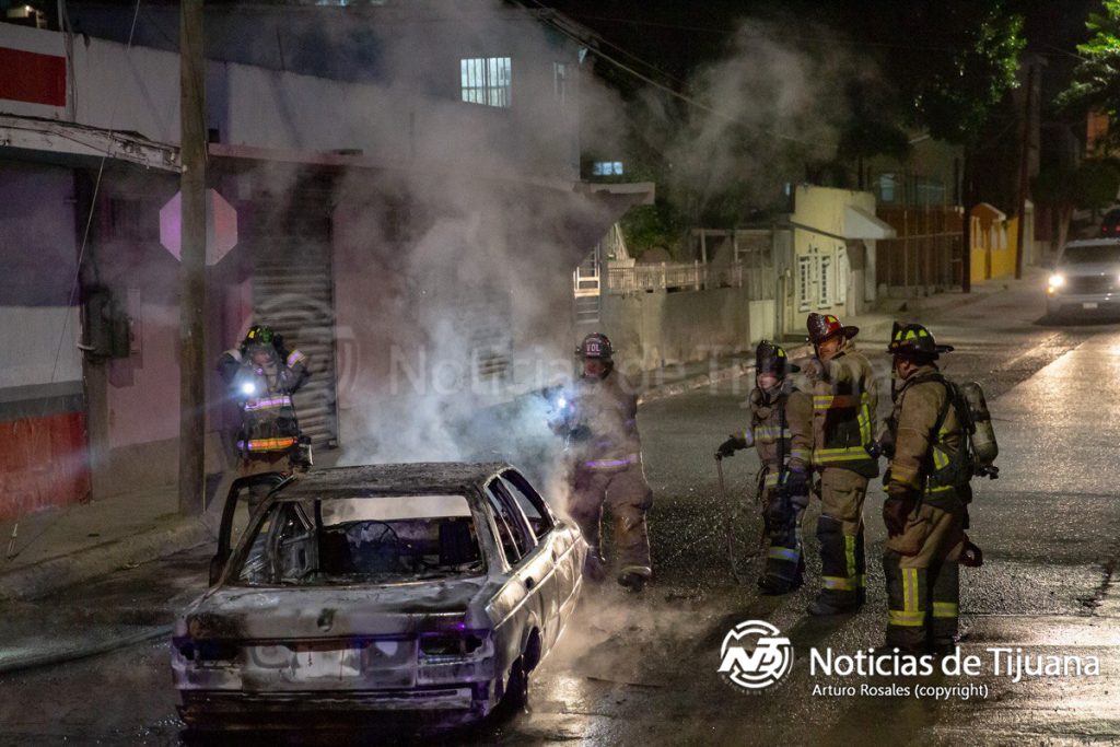 Un automóvil fue consumido por el fuego durante la noche en la colonia Chula Vista, en Tijuana, lo que movilizó al Cuerpo de Bomberos.