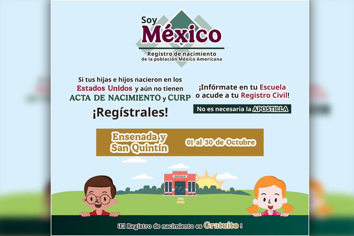 El Gobierno del Estado de Baja California, encabezado por la Gobernadora Marina del Pilar Avila Olmeda, a través del Registro Civil, dio inicio a la campaña de doble nacionalidad “Soy México” en los municipios de Ensenada y San Quintín, misma que estará vigente del 1 al 30 de octubre.