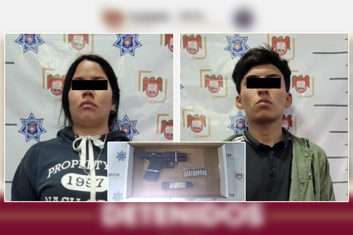De inmediato, los agentes procedieron a su aseguramiento, identificando al individuo como Kevin Yair “N”, de 22 años, y a su acompañante como Sofía “N”, de 24 años. Al revisar el objeto arrojado, se constató que se trataba de un arma de fuego tipo pistola abastecido con 10 cartuchos útiles, por lo que ambos fueron detenidos y se les dieron a conocer sus derechos constitucionales.