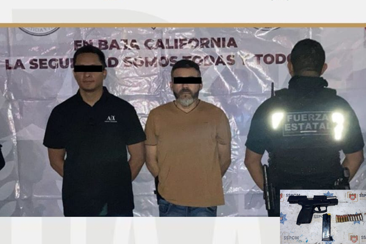 Derivado de los trabajos coordinados de la Policía Municipal, la Fuerza Estatal de Seguridad Ciudadana y la Secretaría de Seguridad y Protección Ciudadana, se detuvo de dos sujetos en posesión de un arma de fuego, en la colonia Playas de Tijuana, Sección Monumental.