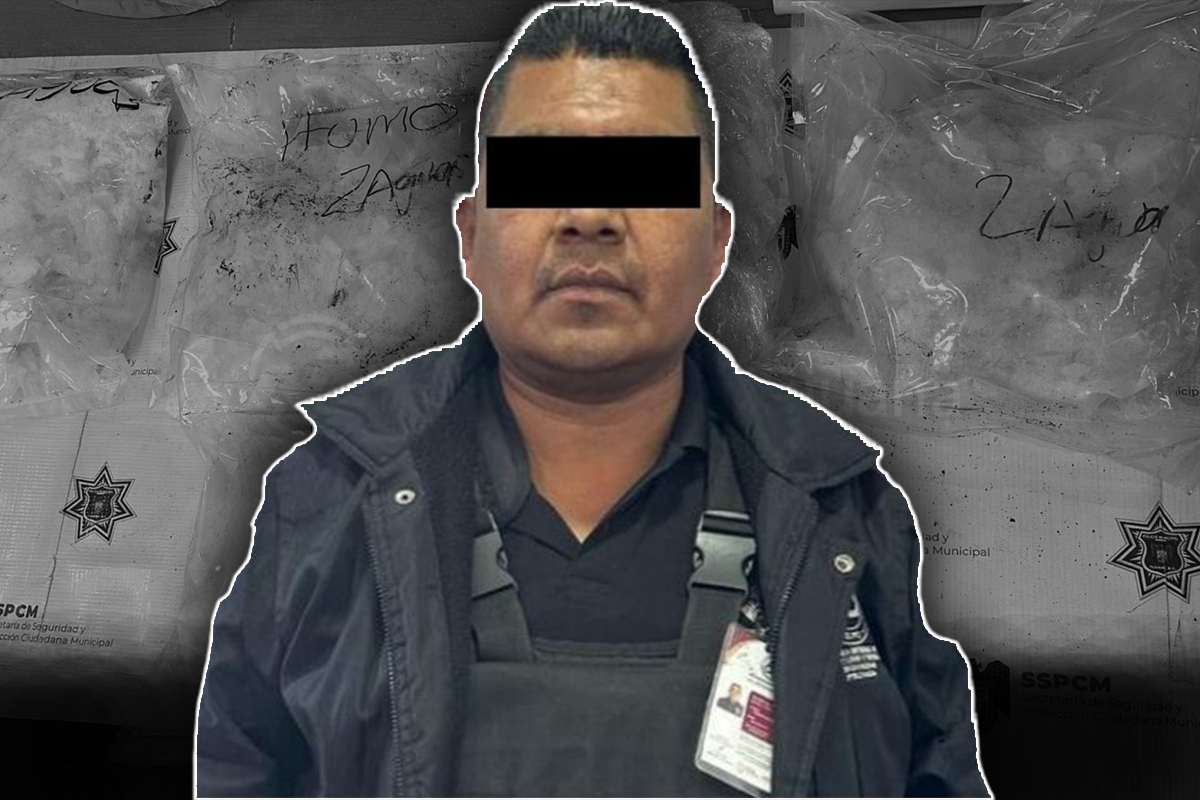Agentes policiales de la Secretaría de Seguridad Pública y Protección Ciudadana Municipal (SPPCM) aseguraron 10 kilos de la droga conocida como “cristal” en un caso de “mula ciega” y arrestaron a un guardia de seguridad por su presunta participación en el hecho.