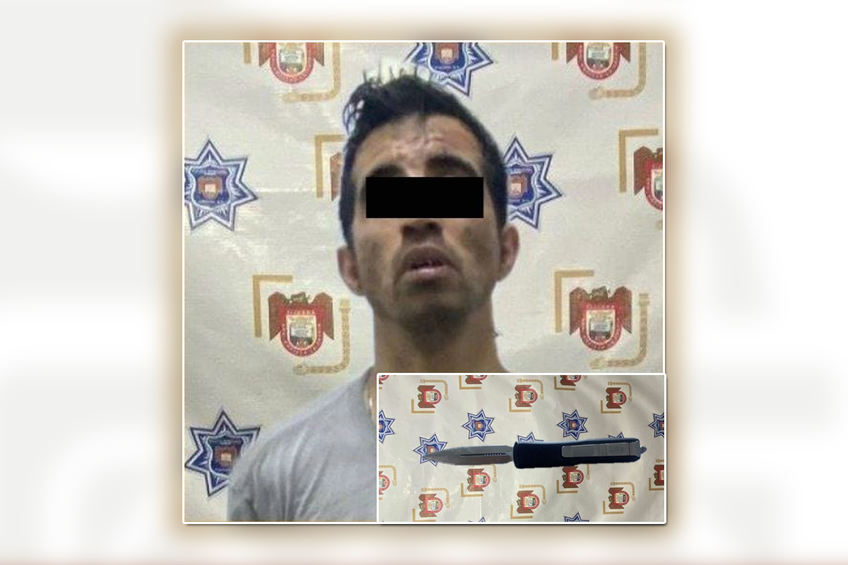 Elementos de la Policía Municipal de Tijuana atendieron un reporte de la central de radio sobre una persona agresiva con arma prohibida, que intentó robar con lujo de violencia a una mujer en la colonia Poblado Ejido Matamoros.