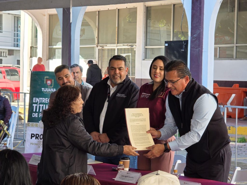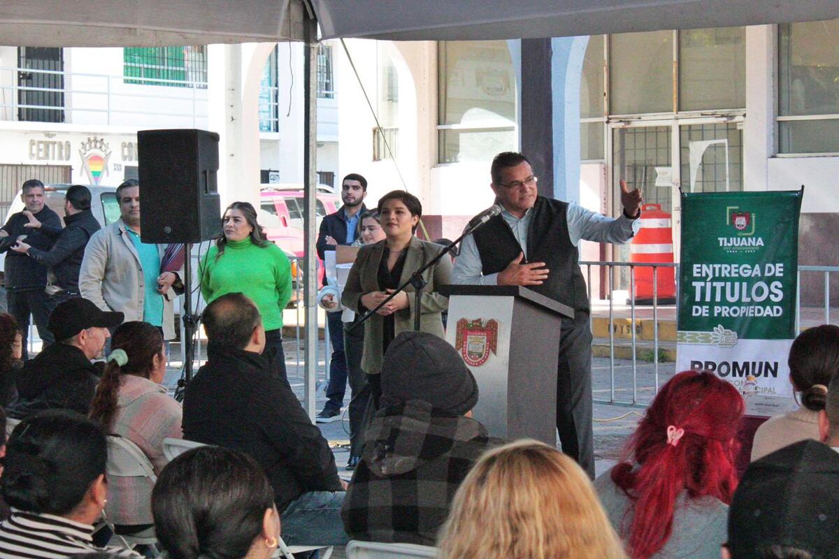 Un total de 102 ciudadanas y ciudadanos de distintas colonias de Tijuana recibieron este día su título de propiedad, dando un paso fundamental hacia la certeza jurídica y la tranquilidad patrimonial, informó Arturo Aguirre durante el acto de entrega.