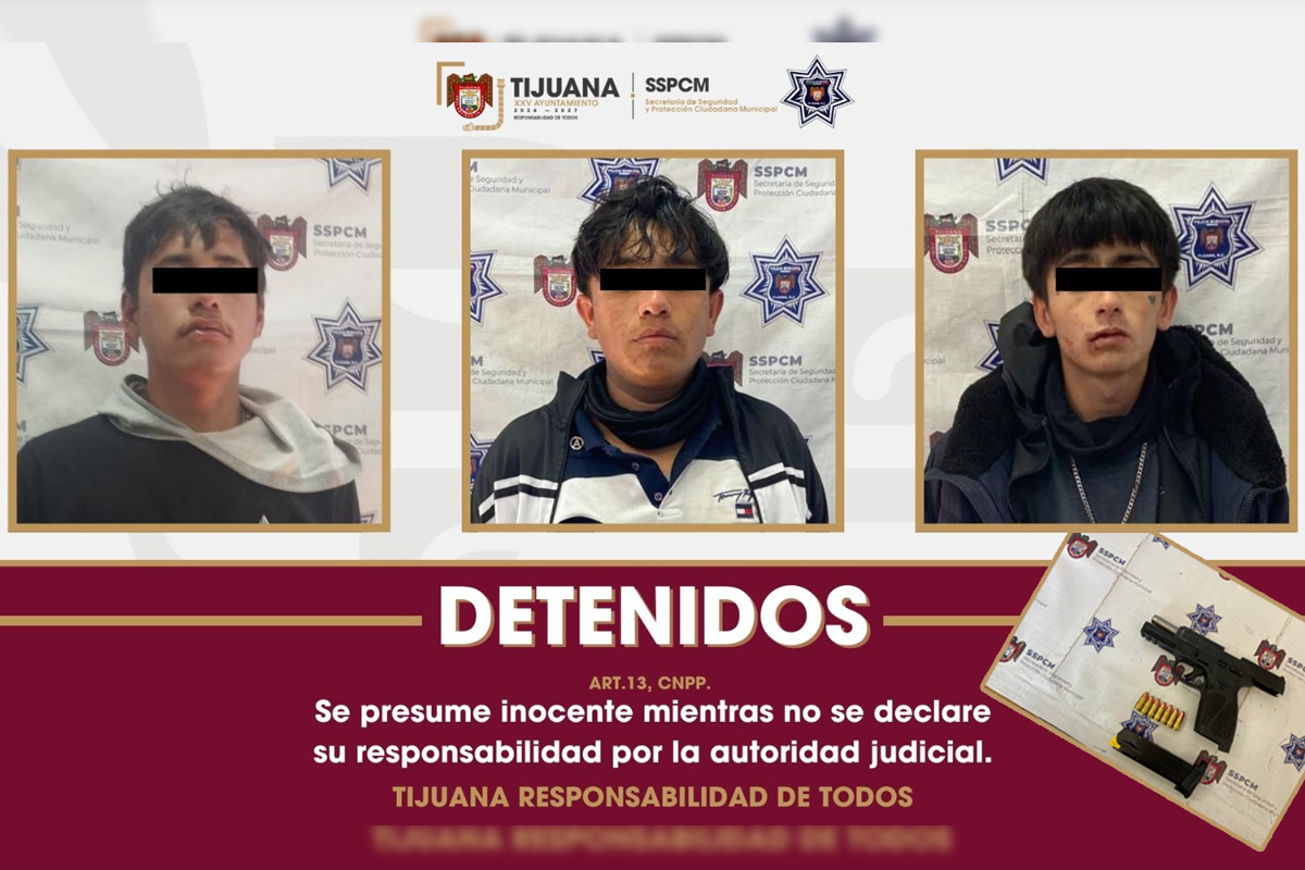 Los agentes lograron interceptar a los presuntos delincuentes en la colonia Las Torres, procediendo a su detención de acuerdo al protocolo de actuación policial, quienes fueron identificados como Luis Enrique “N” de 20 años, Fernando Antonio “N” e Israel “N”, ambos de 18 años, a quienes les fue asegurada un arma de fuego calibre 9 milímetros con 7 cartuchos útiles.