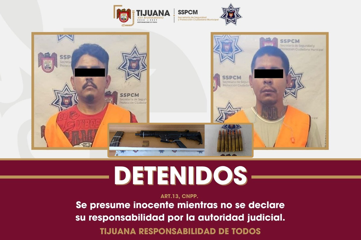 Durante un recorrido preventivo en puntos de atención prioritaria de la colonia Sánchez Taboada, agentes de la Secretaría de Seguridad y Protección Ciudadana Municipal (SSPCM), aseguraron a dos individuos en posesión de un arma de fuego de alto calibre.