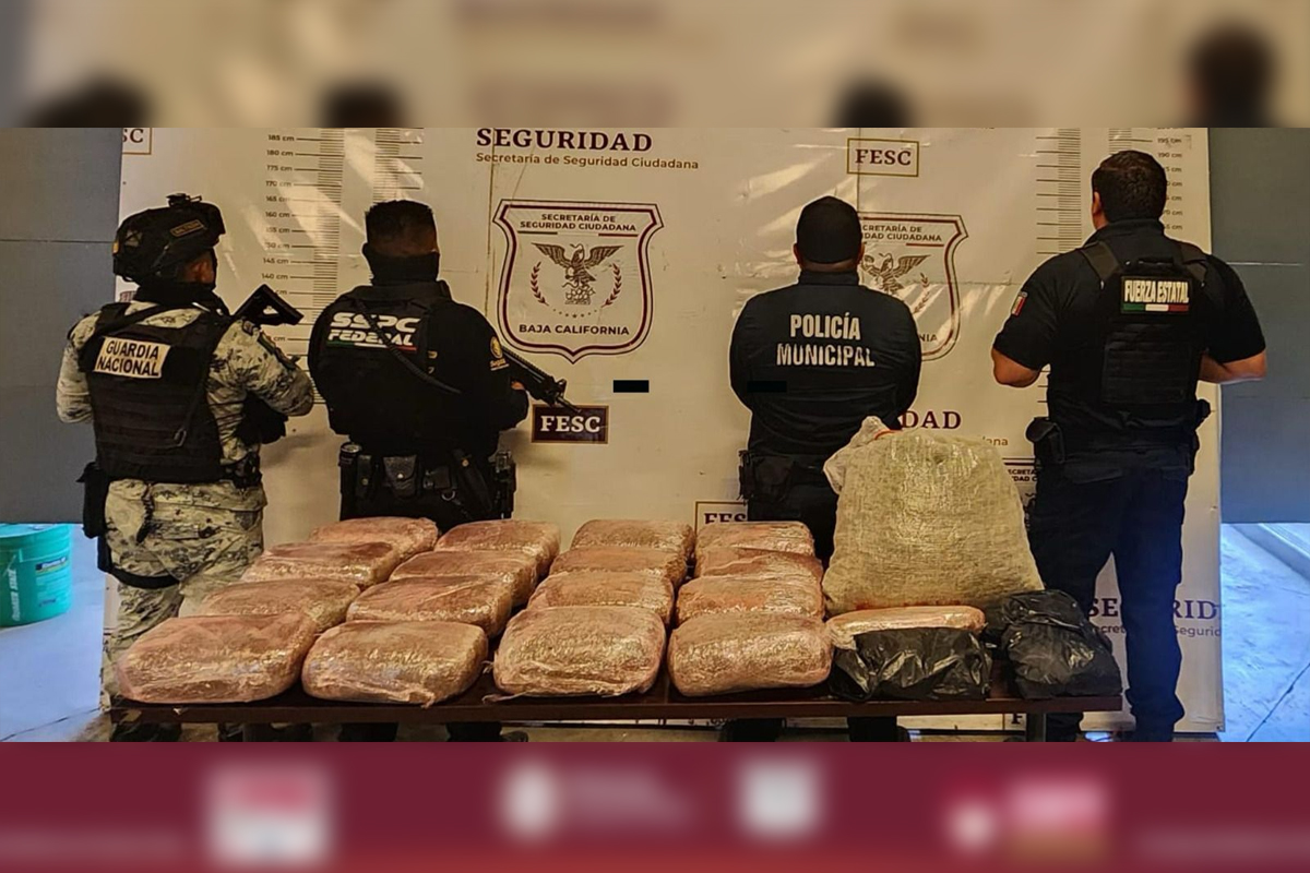 Agentes de la Fuerza Estatal de Seguridad Ciudadana (FESC), en coordinación con la SSPC Federal, Policía Municipal y Guardia Nacional, aseguraron aproximadamente 20 kilogramos de marihuana abandonada en la colonia Palma Real, Tijuana.
