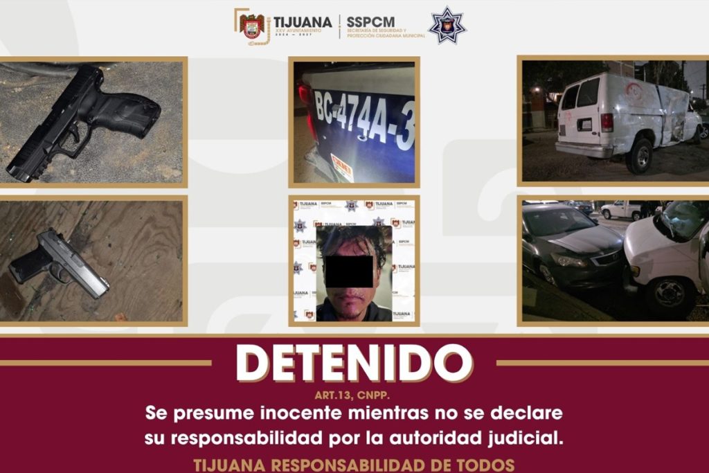 TIJUANA, BC, (NDT).- De acuerdo con el informe, los hechos ocurrieron la madrugada de este martes 7 de abril, cuando elementos realizaban un patrullaje preventivo y detectaron un vehículo Ford Econoline que circulaba sin luces. Al indicarle al conductor que detuviera su marcha mediante señales visuales y verbales, este ignoró la instrucción y aceleró, lo que dio inicio a una persecución.