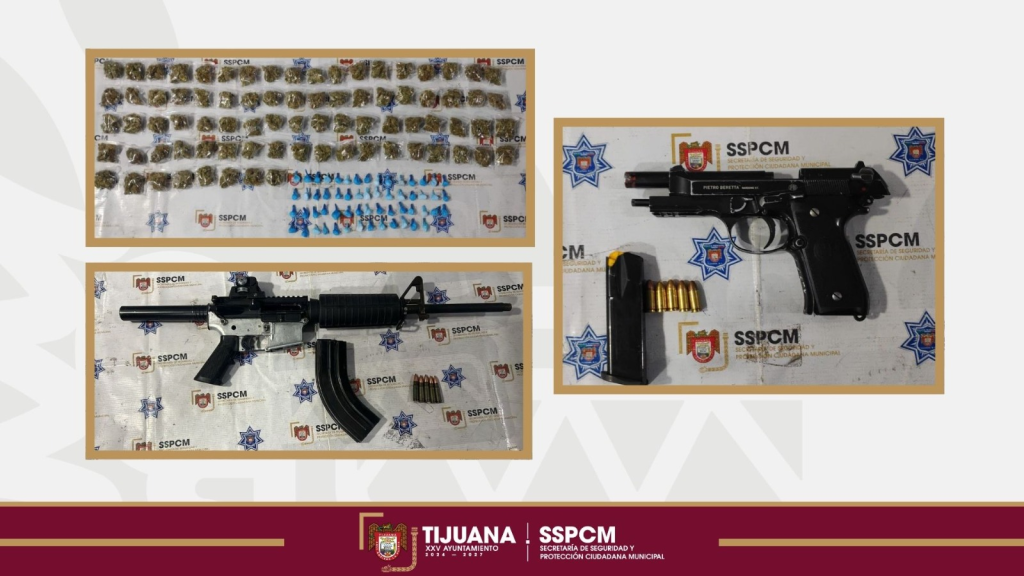 Dos hombres fueron detenidos en distintos operativos realizados por la Policía Municipal de Tijuana, tras ser sorprendidos en posesión de armas de fuego y envoltorios con presunta droga.