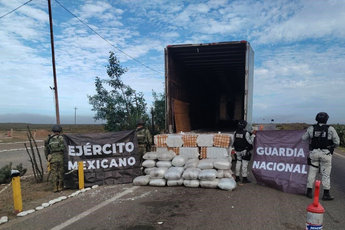 En el municipio de Altar, en Sonora, la coordinación de instituciones de seguridad de los 3 niveles de gobierno llevaron a la detención de dos personas, quienes se encontraban en posesión de 17 paquetes con 16 kg de heroína y 33 paquetes con 32 kg de heroína y fentanilo.
