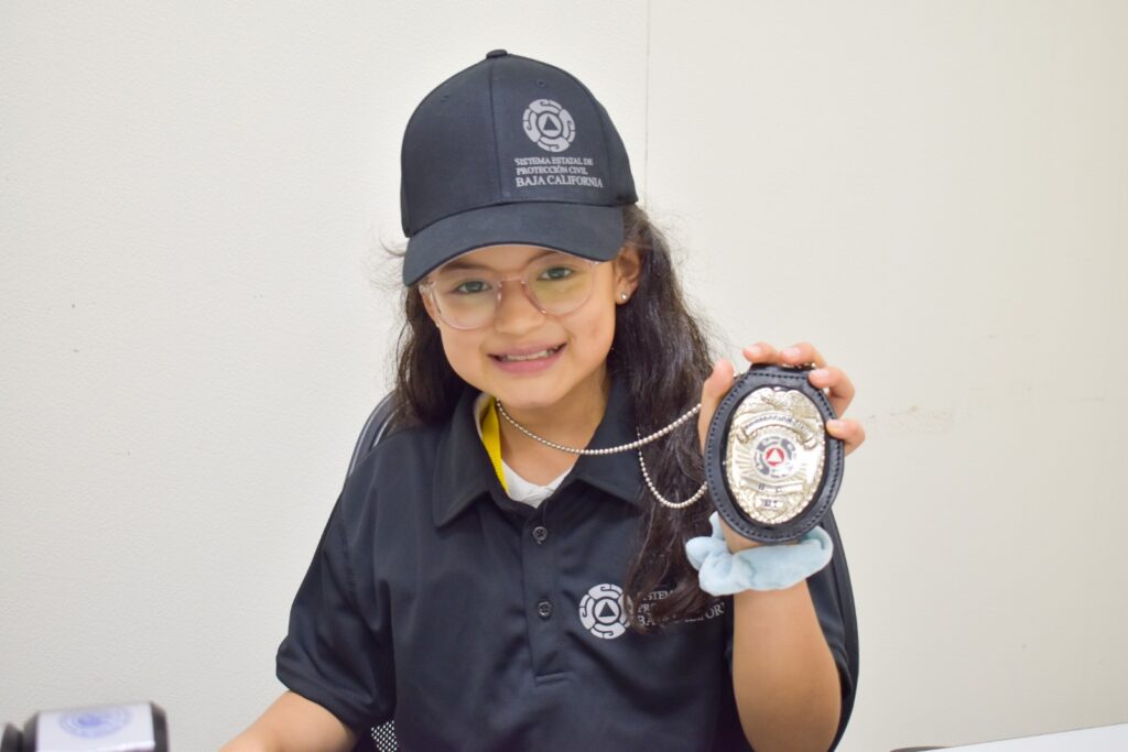 Como parte de las actividades conmemorativas por el Día de la Niña y el Niño, Vanessa Jiménez Cordero, de 10 años, tomó protesta de manera honorífica como Coordinadora Estatal de Protección Civil por un día, en las oficinas de la CEPC en la ciudad de Mexicali.