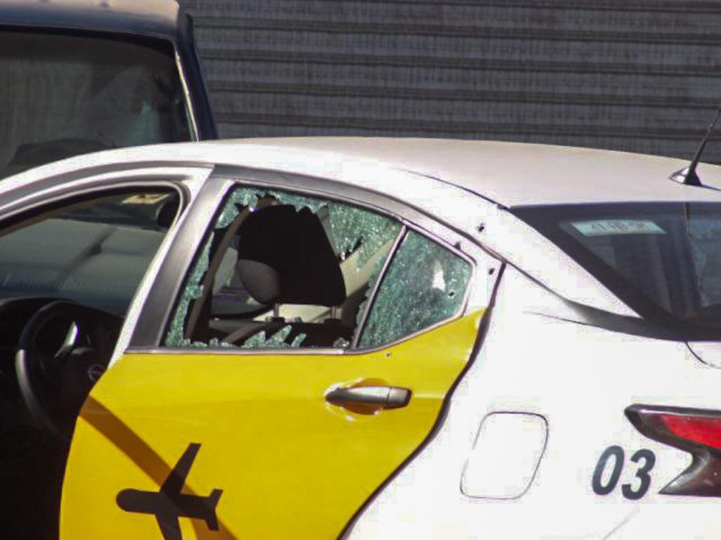 El atentado ocurrió sobre la carretera Aeropuerto, en el cruce con Avenida Bellas Artes, donde el taxi marcado con el número 03, color blanco con franjas amarillas, quedó atravesado tras recibir decenas de disparos en cristales y puertas.