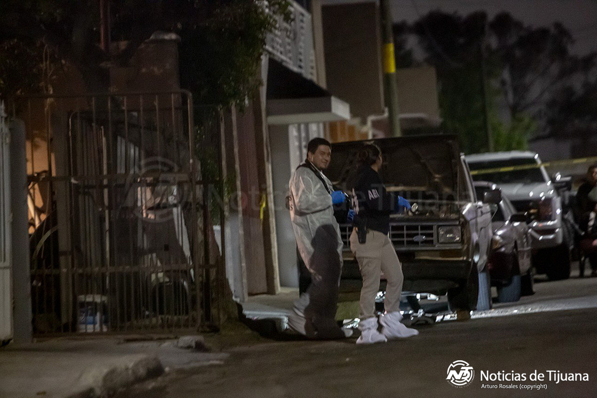 Policías municipales respondieron a un reporte de disparos en la calle Pirul número 16, esquina con avenida 76. En el lugar, encontraron a dos hombres heridos en el patio del taller.