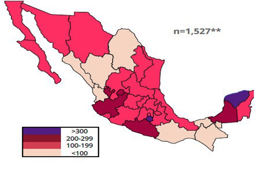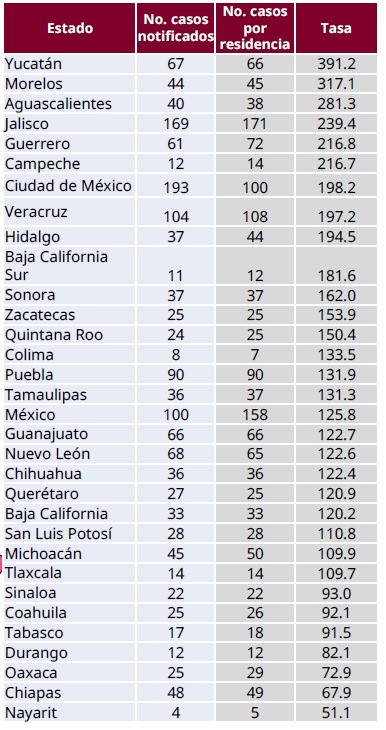 En comparación con otras entidades, Baja California presentó una incidencia menor que estados como Yucatán (391.2), Morelos (317.1) y Aguascalientes (281.3), sin embargo, estuvo por encima de regiones como Nayarit (51.1), Chiapas (67.9) y Oaxaca (72.9), donde se observaron las tasas más bajas.