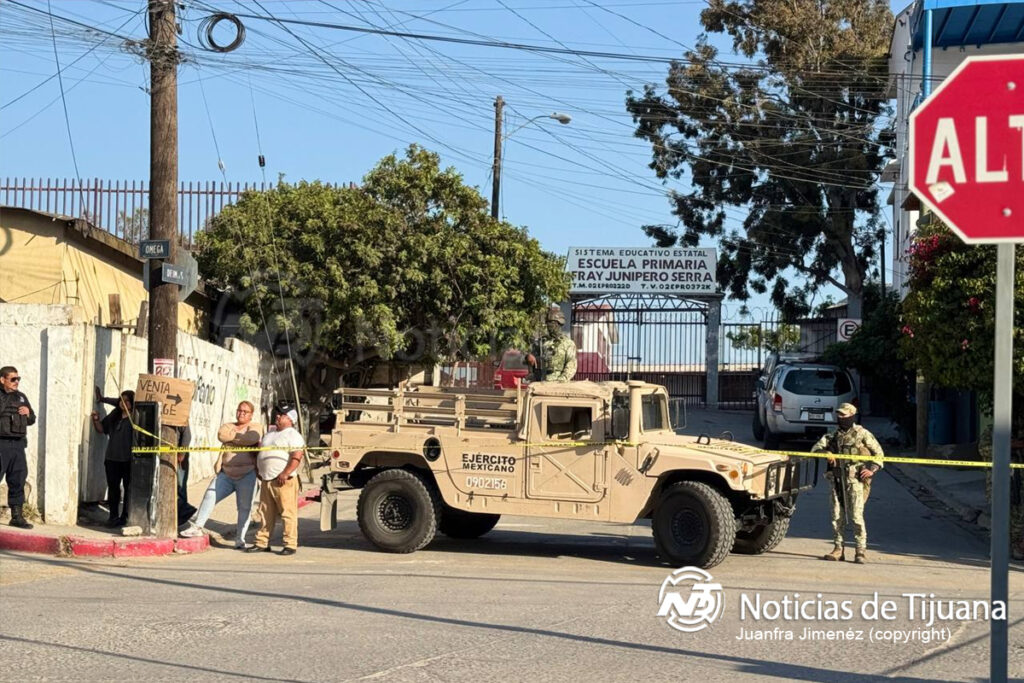 El ataque ocurre frente a la Escuela Primaria Fray Junípero Serra, lugar hasta donde arribaron policías municipales que atendieron el reporte al 911 sobre la agresión armada.