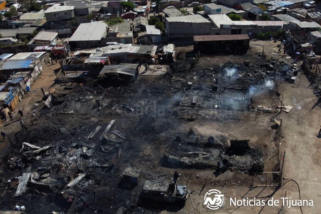 Bomberos respondieron a dos siniestros simultáneos que consumieron 29 viviendas en Tijuana
