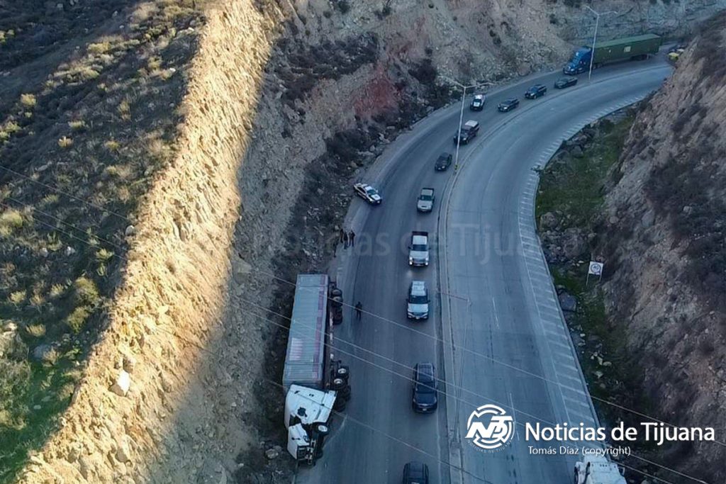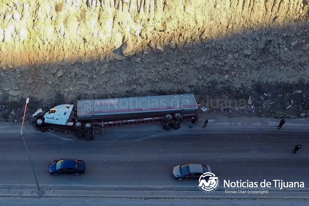 De acuerdo con el reportero de NDT Noticias de Tijuana, Tomás Díaz, el operador habría perdido el control al circular con exceso de velocidad, sumado al peso de la carga que terminó por arrastrarlo hasta provocar la volcadura.