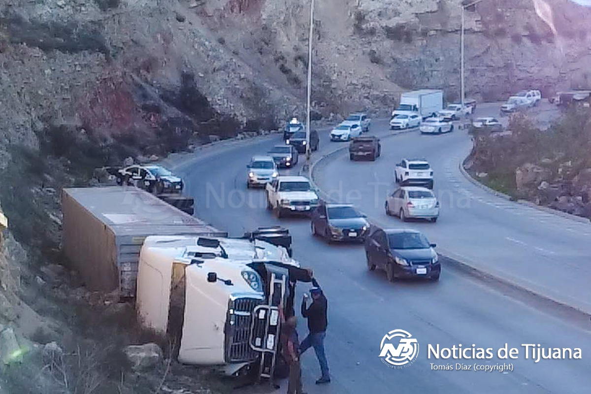 De acuerdo con el reportero de NDT Noticias de Tijuana, Tomás Díaz, el operador habría perdido el control al circular con exceso de velocidad, sumado al peso de la carga que terminó por arrastrarlo hasta provocar la volcadura.