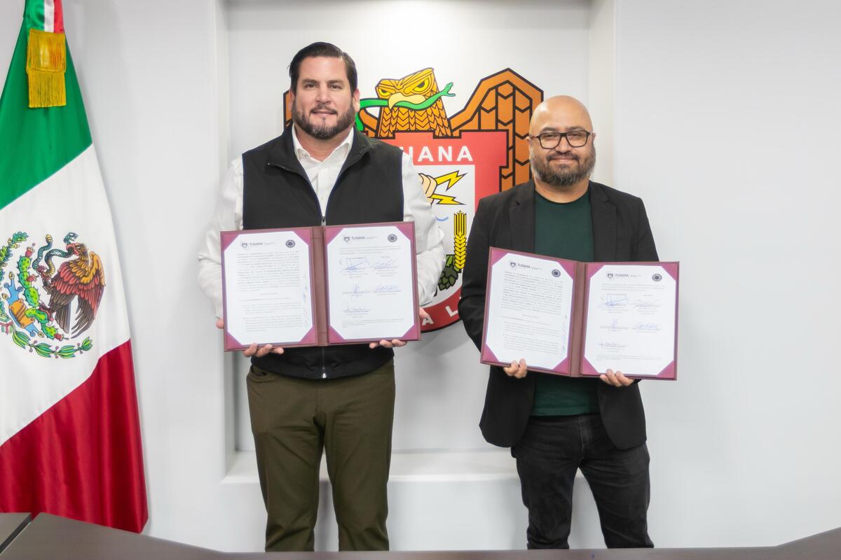 “Este convenio nos ayudará a que nuestros estudiantes se involucren con las instituciones, en los temas que trabajan, en lo que les gusta: el medio audiovisual y aportar, de esta manera, al desarrollo de Tijuana”, apuntó González Silva. En la firma también participaron el coordinador académico Walter Humberto Padilla Ramírez, la auxiliar de vinculación Rocío Gabriela Betancourt Martínez, y funcionarios de la Oficialía Mayor del Ayuntamiento.