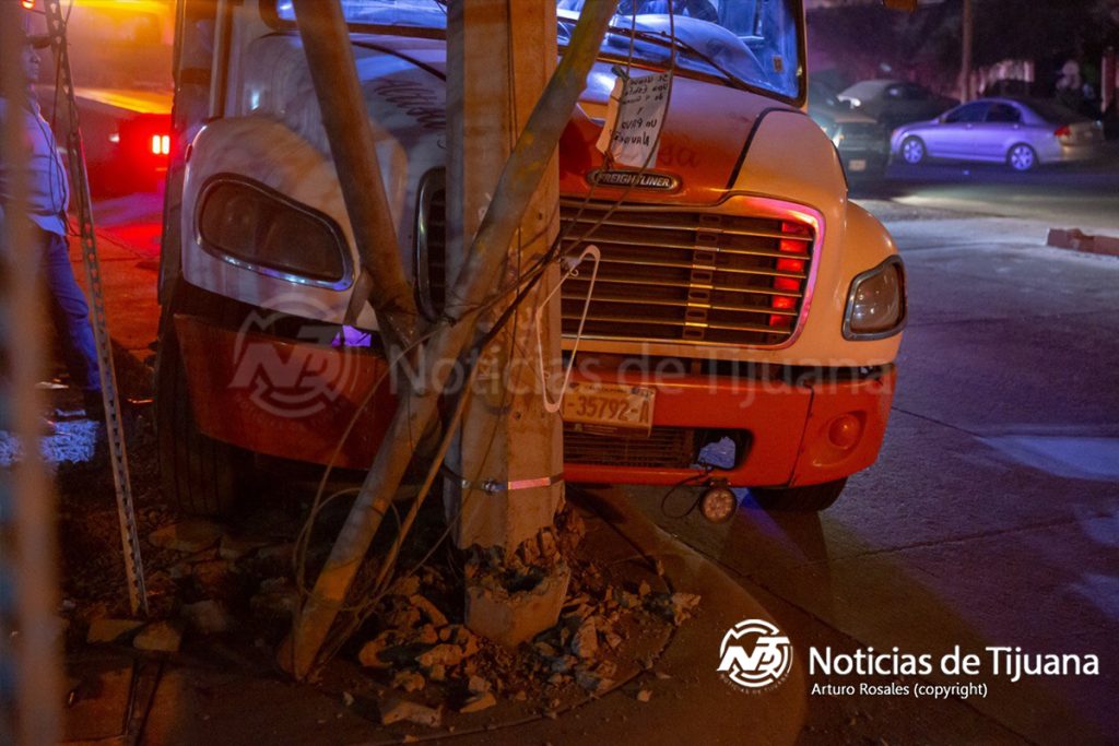 Una fuerte movilización de unidades de emergencia se registró luego de que un camión de transporte público se impactara contra un poste de concreto, presuntamente tras quedarse sin frenos, en el fraccionamiento Lomas de San Martín.