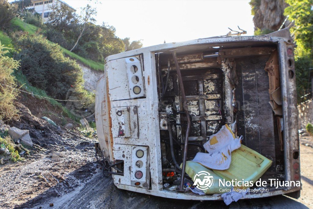 De acuerdo con testimonios de vecinos, el vehículo ascendía por una pendiente cuando presentó una falla mecánica, lo que provocó que comenzara a irse de reversa sin control. En su trayectoria, el camión terminó impactándose contra un talud de tierra, lo que derivó en su volcadura.