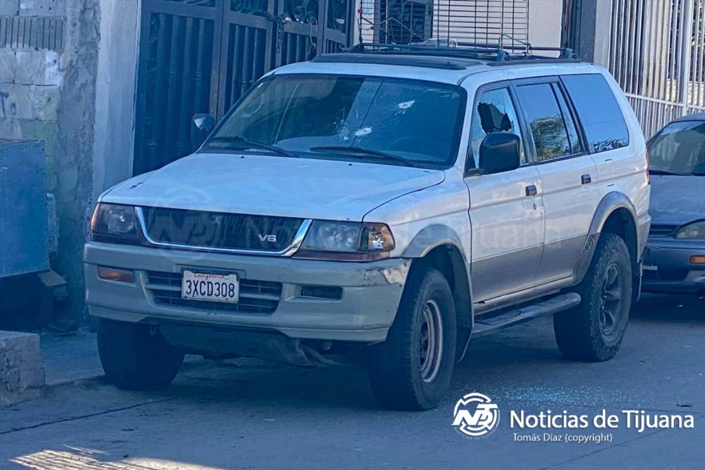 El vehículo, una Mitsubishi Montero color blanca, quedó con impactos en el parabrisas, el cofre y una ventana lateral destrozada. Los vecinos reportaron las detonaciones y pidieron apoyo a las autoridades.