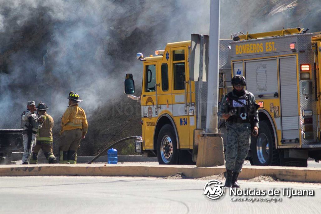 Efectivos de la Guardia Nacional cerraron la circulación vehicular desde El Refugio en dirección hacia Otay para facilitar el trabajo de liberación de la vialidad, situación que obligó a los conductores a retornar por la caseta de cobro de la carretera libre Tijuana-Tecate, provocando tráfico lento durante varios minutos por el lugar.