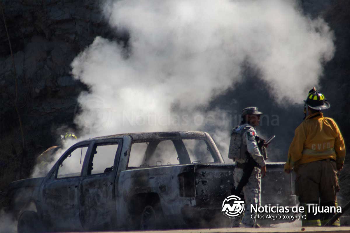 Efectivos de la Guardia Nacional cerraron la circulación vehicular desde El Refugio en dirección hacia Otay para facilitar el trabajo de liberación de la vialidad, situación que obligó a los conductores a retornar por la caseta de cobro de la carretera libre Tijuana-Tecate, provocando tráfico lento durante varios minutos por el lugar.