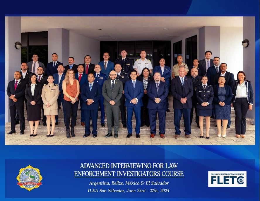 Posteriormente, del 23 al 28 de junio de 2025, se realizó el “Curso Avanzado de Entrevistas para Investigadores en el Cumplimiento de la Ley”, dirigido por instructores del Centro de Capacitación de las Fuerzas del Orden Federal (FLETC).