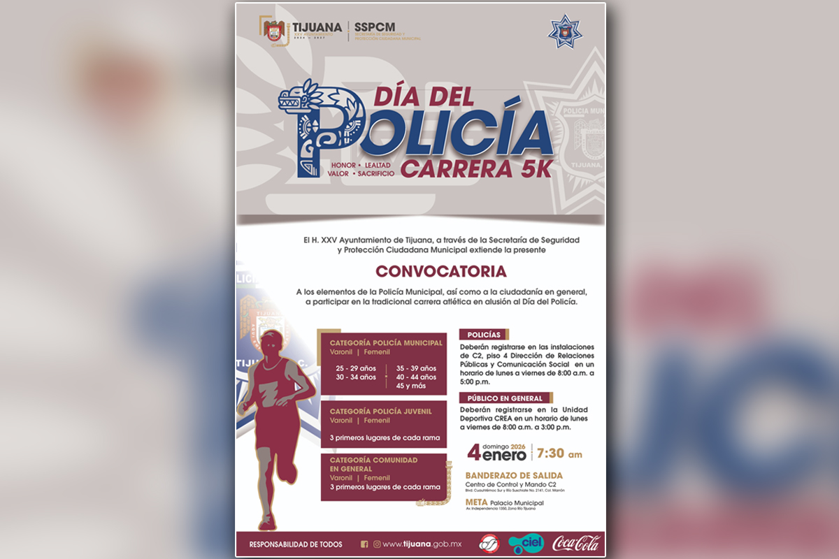 El registro abrirá el lunes 22 de diciembre. La población en general podrá inscribirse en la Unidad Deportiva CREA, de lunes a viernes de 8:00 a 15:00 horas, mientras que el personal de la Policía Municipal deberá hacerlo en las instalaciones de la SSPCM, de 8:00 a 17:00 horas.