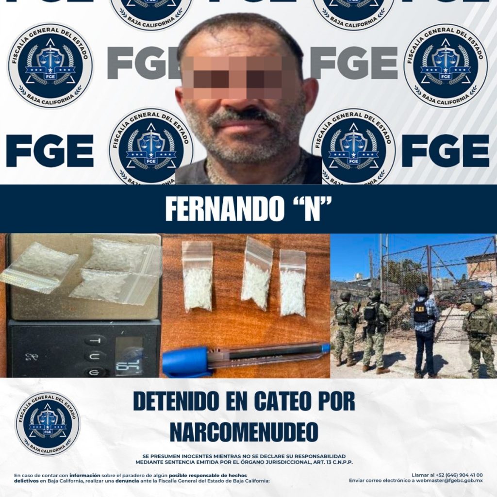 Un cateo realizado por la Fiscalía General del Estado en la colonia Benito Juárez permitió el aseguramiento de presunta metanfetamina y la detención de un hombre.