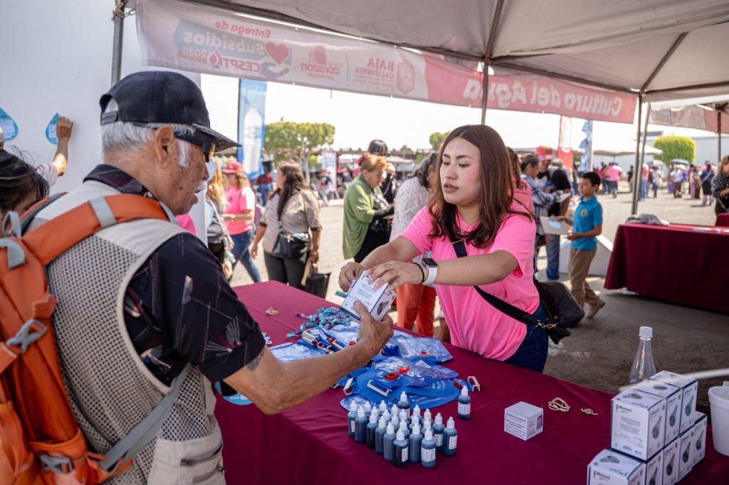 En todos los eventos, se entregaron materiales y artículos promocionales para reforzar los mensajes de Cultura del Agua, como cuadernillos de trabajo, manteletas educativas, lápices ecológicos, plumas, pulseras y vasos con mensajes de ahorro, así como dispositivos ahorradores de agua, entre ellos relojes de arena para el reto del baño de cinco minutos, bolsas ahorradoras para sanitarios, goteros detectores de fugas, regaderas ecológicas y aireadores para grifo.