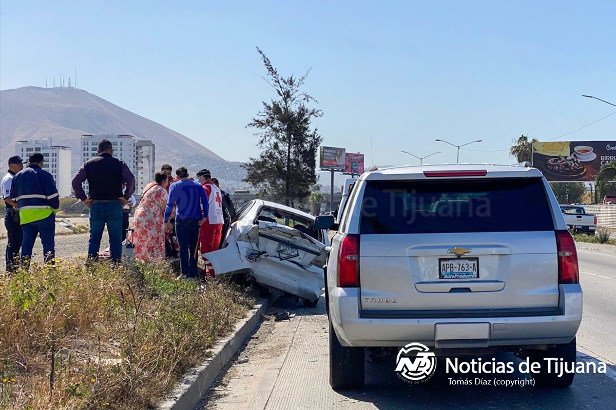 Un accidente vehicular entre una camioneta Chevrolet Tahoe y un Chevrolet Aveo quedó registrado sobre la Vía Rápida Poniente, a la altura de la gasolinera Arco.