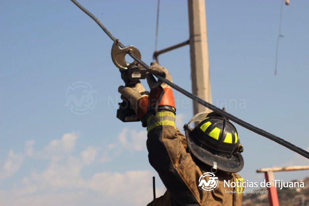 Posteriormente, un tráiler que circulaba por el área se atoró con cables eléctricos de un poste, por lo que bomberos realizaron maniobras para retirar el tendido y restablecer las condiciones de seguridad.