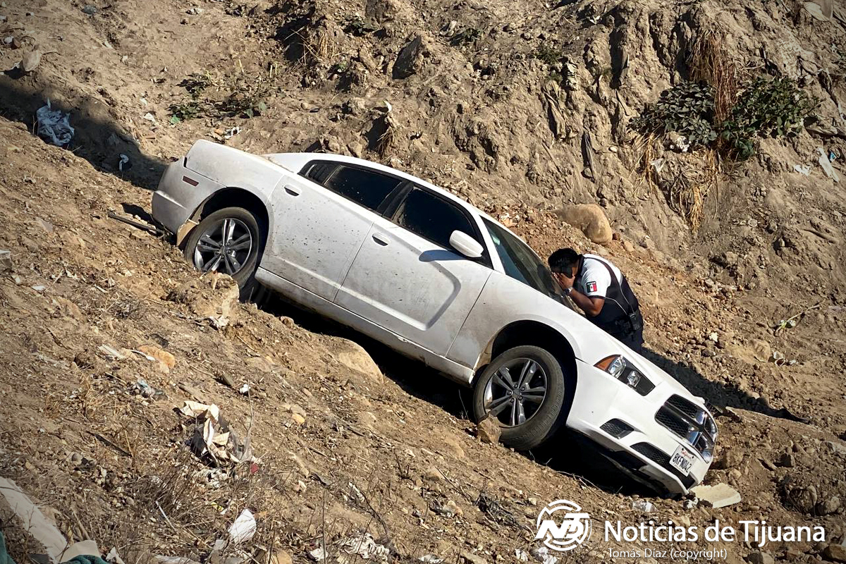 Conductor de Dodge Charger se sale del camino, cae a barranco y abandona el lugar