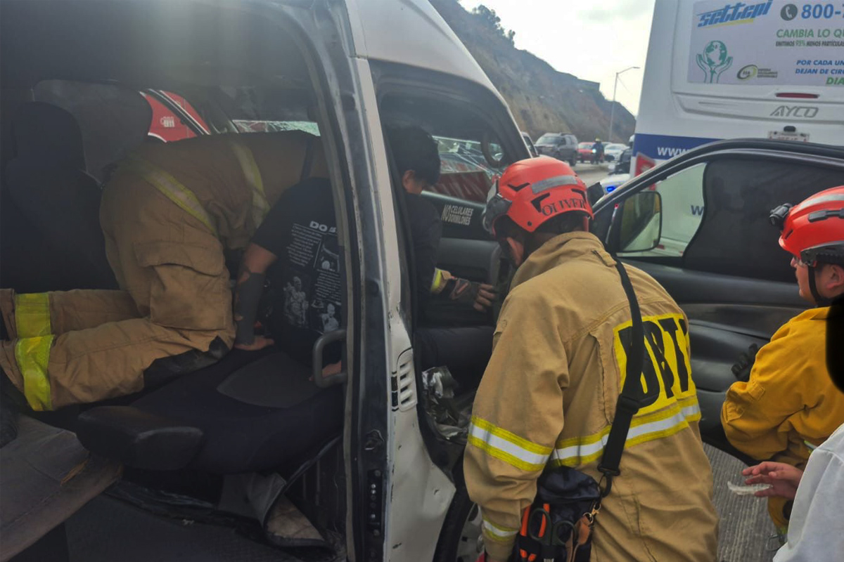 El percance provocó que el conductor del transporte público quedara atrapado por una pierna en el interior de la unidad, por lo que fue necesaria la intervención del personal de Bomberos para liberarlo.