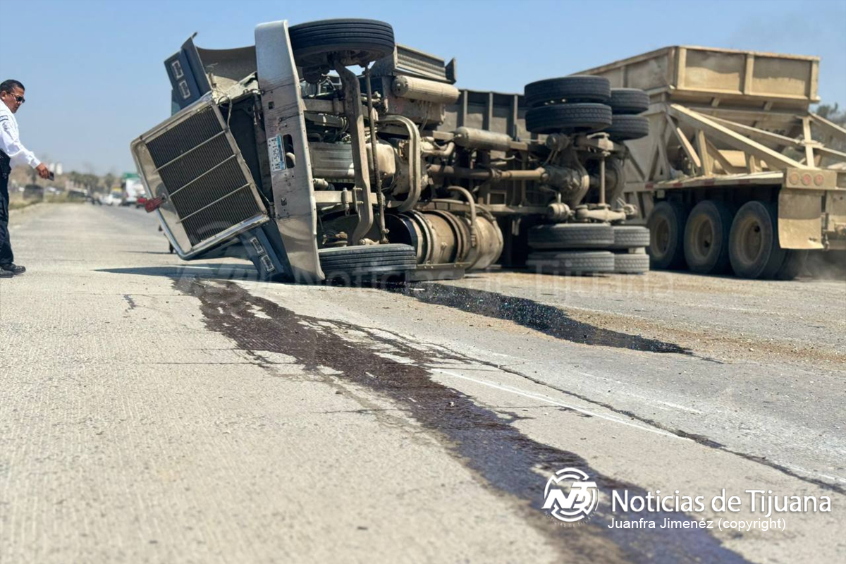 El conductor de un tractocamión sufrió un accidente con volcadura la mañana del martes 10 de junio, en el bulevar 2000 a la altura del retorno del fraccionamiento Natura.