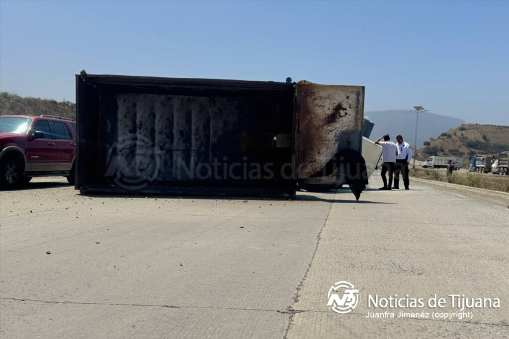 Elementos del Heroico Cuerpo de Bomberos atendieron la emergencia, controlando los residuos esparcidos en la vía y realizando el abanderamiento para agilizar el flujo vehicular.