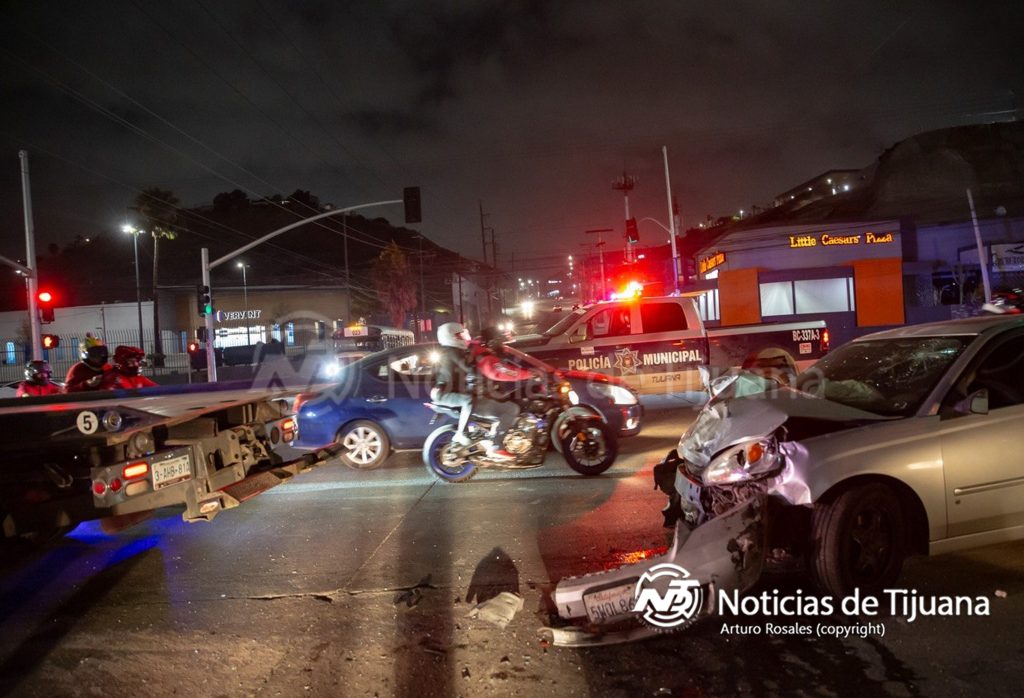 Tijuana, BC. (NDT).– Un fuerte accidente de tránsito registrado sobre el bulevar Insurgentes, a la altura de la intersección con Calzada CETYS, dejó como saldo a una pareja lesionada y atrapada entre los fierros retorcidos de un vehículo de plataforma.