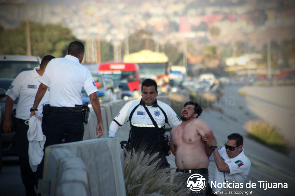 En su intento de huir, corrió hacia la canalización, pero fue arrestado metros más adelante y puesto a disposición de las autoridades por lesiones a los oficiales.