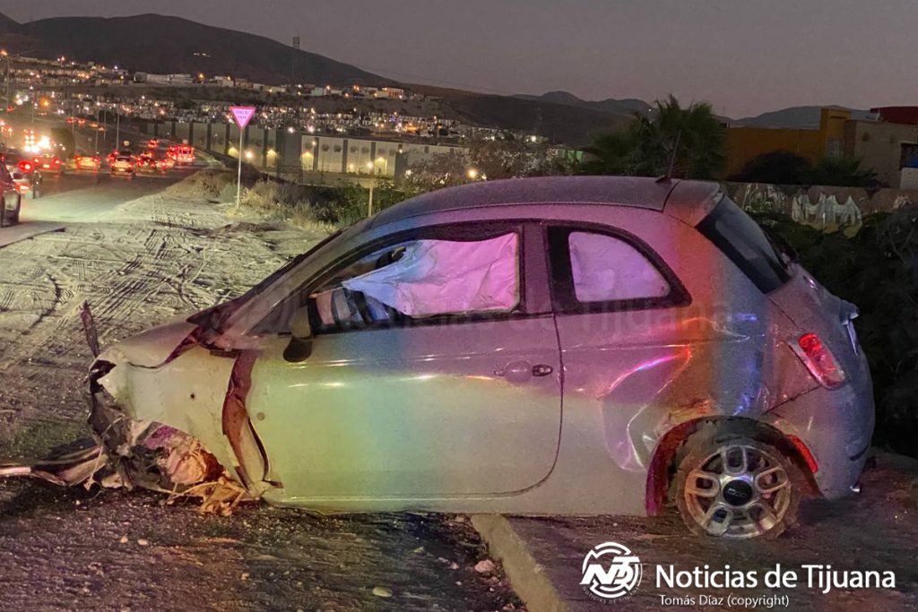 Al conducir bajo la influencia del alcohol, el conductor de un vehículo FIAT se impactó contra un muro de contención, perdiendo el control del auto y quedando varado sobre la banqueta, un lugar que frecuentemente tiene peatones esperando por un taxi.