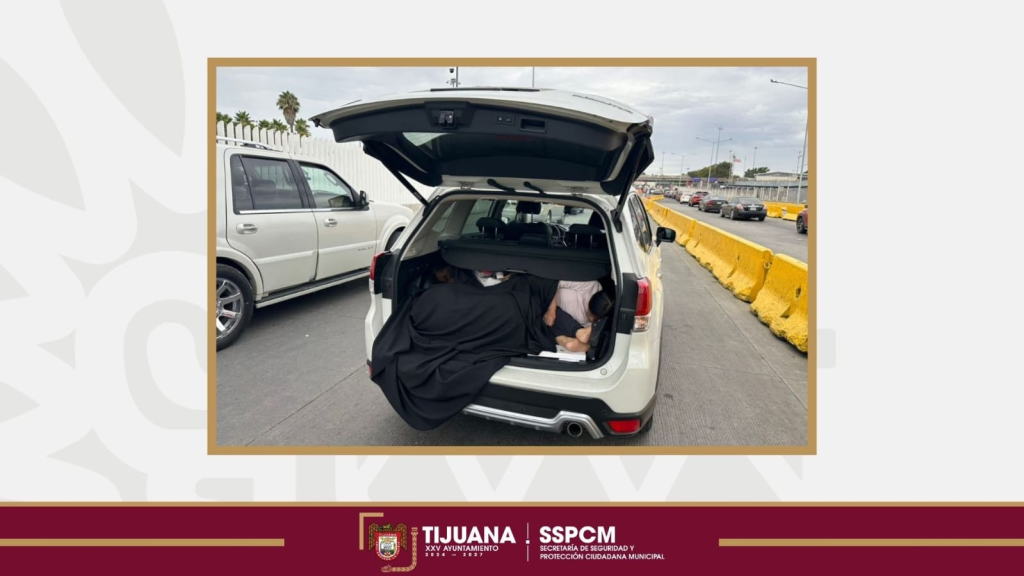 Elementos de la Policía Municipal brindaron apoyo a una mujer que, al llegar al carril Ready Line de la Garita Internacional de Otay, descubrió a tres personas dentro de la cajuela de su automóvil.
