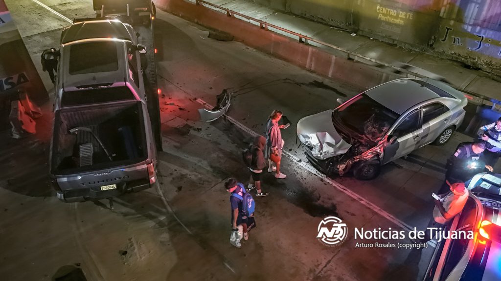 De acuerdo con información recabada en el sitio, la conductora de la camioneta habría realizado una vuelta en “U” con dirección hacia Playas de Tijuana, lo que provocó la colisión.